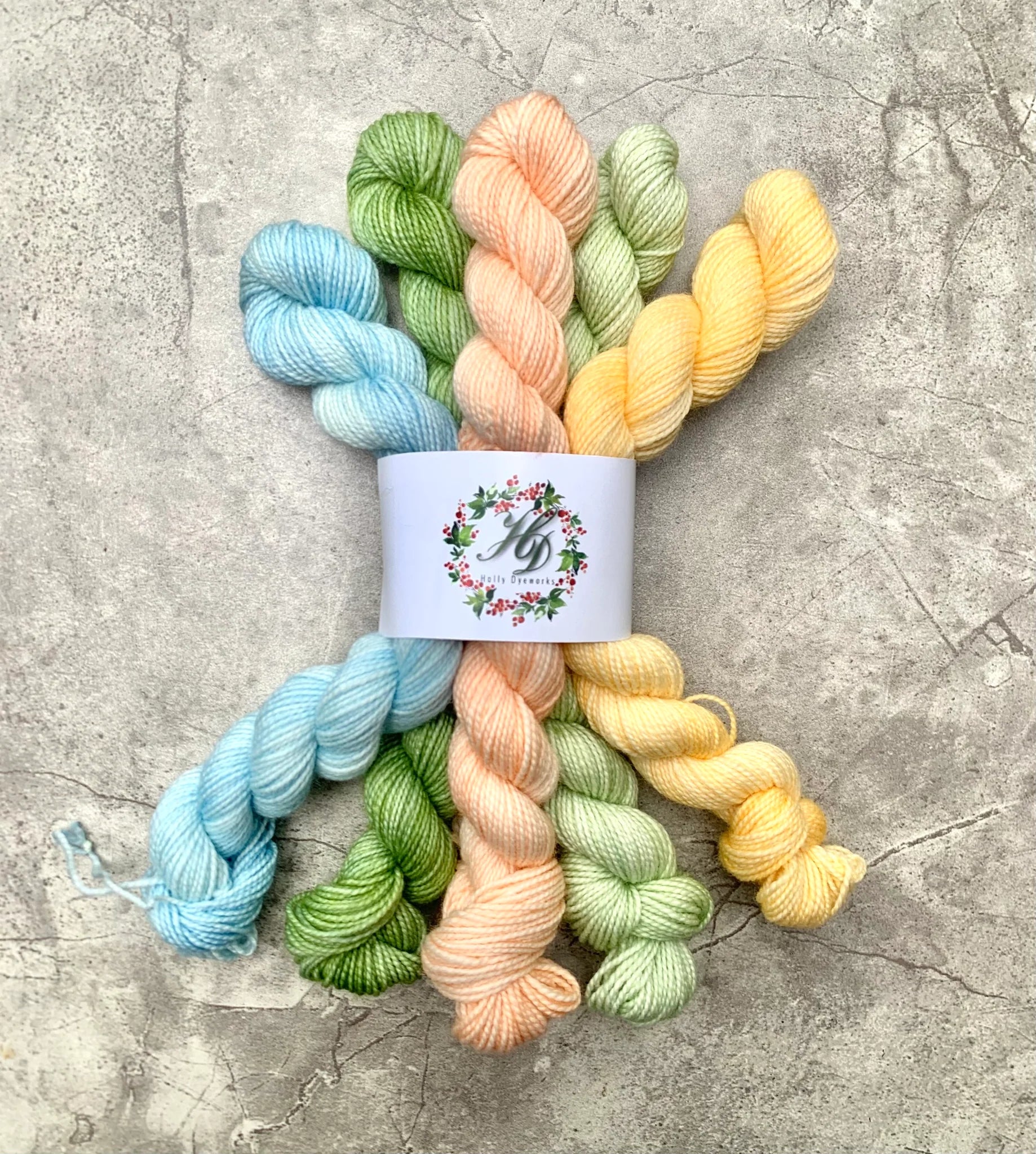 Mini-skein sets in soft, beautiful colors from Holly Dyeworks