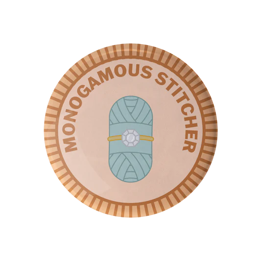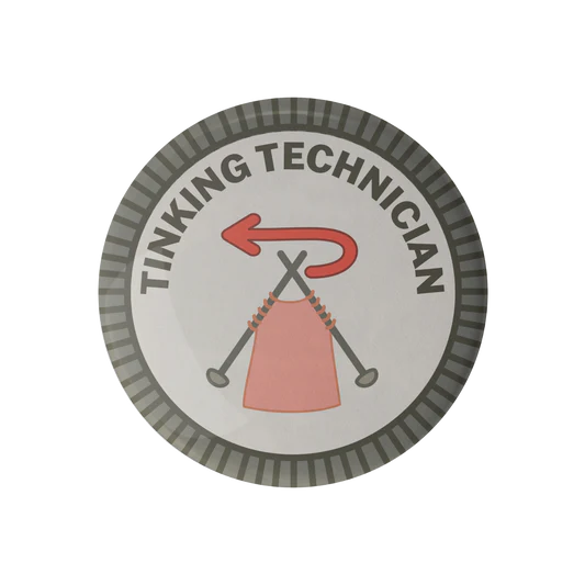 Knitting and yarn craft inspired merit badges with original artwork design and production by Camp Stitchwood (formerly adKnits).